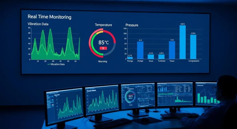 IoT sensors capture vibration, temperature, and pressure data from critical pumps, turbines, and compressors.