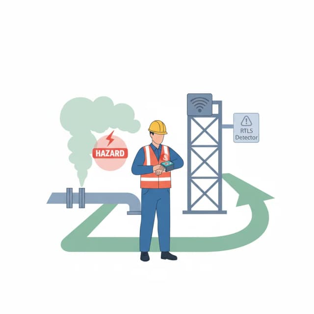 A worker enters a high-risk zone near a gas leak. Ombrulla's RTLS system detects the hazard and sends an instant alert to the worker's wearable device, guiding them to safety and preventing a potential accident.